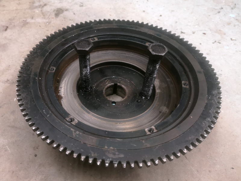 Here’s a trick i found during the disassemble – to remove the flywheel, you can use the bolts that attach the front leaf spring to the suspension forks
